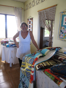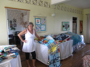 August 14, 2025Carol Richardson recently invited me to her studio Estate Hope Art Studio located on Crocus Hill in sunny Anguilla. Carol previously enjoying oils and pastels has now turned most of her artistic attention to quilting. Originally from Baltimore, Carol came to the Caribbean 23 years ago and later married her husband Walter. She was a nurse for many years but left healthcare to open a gallery in St. Thomas. Opportunity brought them back to the island of Walter’s heritage, Anguilla in 2001. They lived on Roaches Hill in Walter’s Mom’s home with Miss Jimmy. Miss Jimmy’s house then had no water and occasional electricity but a recent 17 month refurbishment accomplished by Carol and Walter has transformed this traditional home into an artist retreat.
